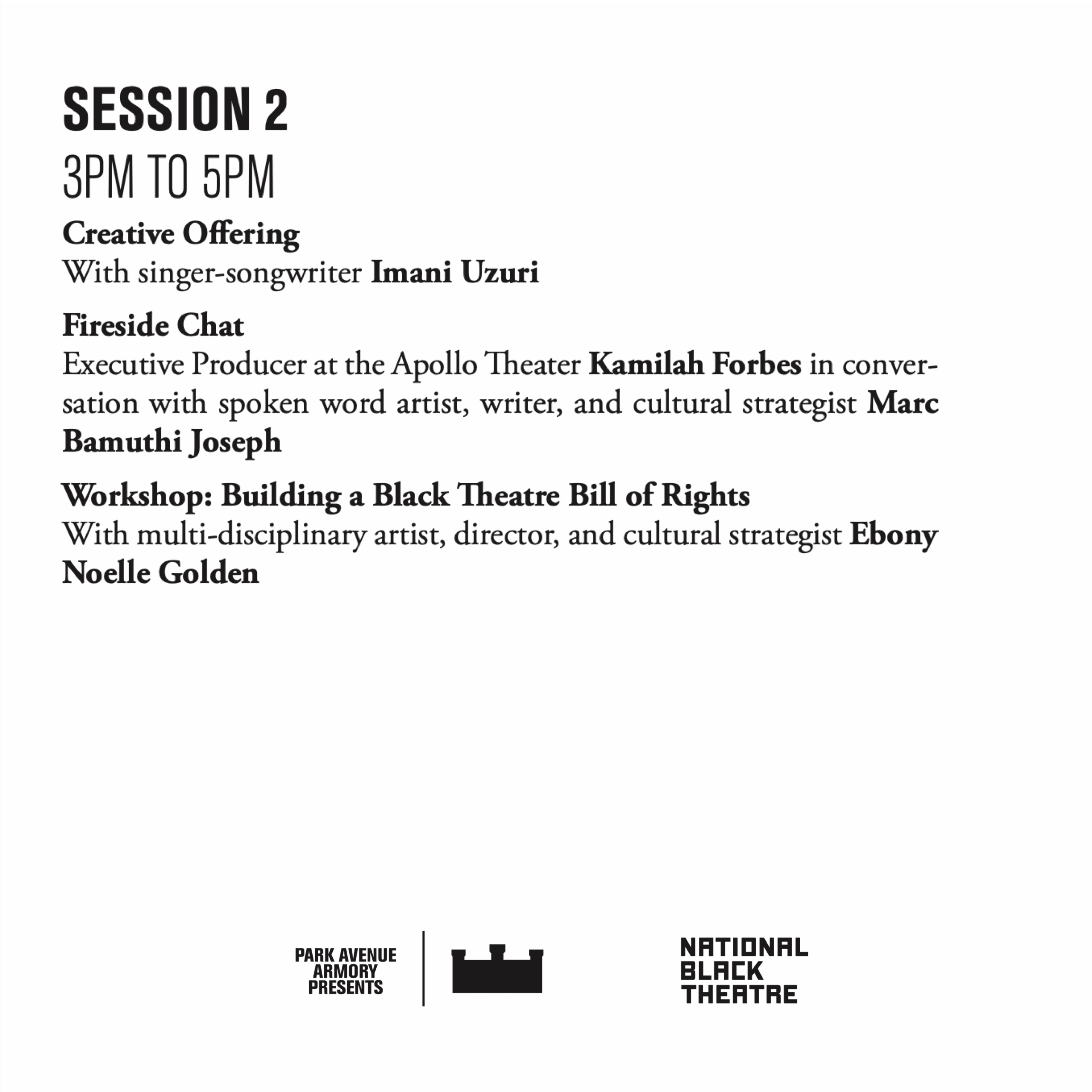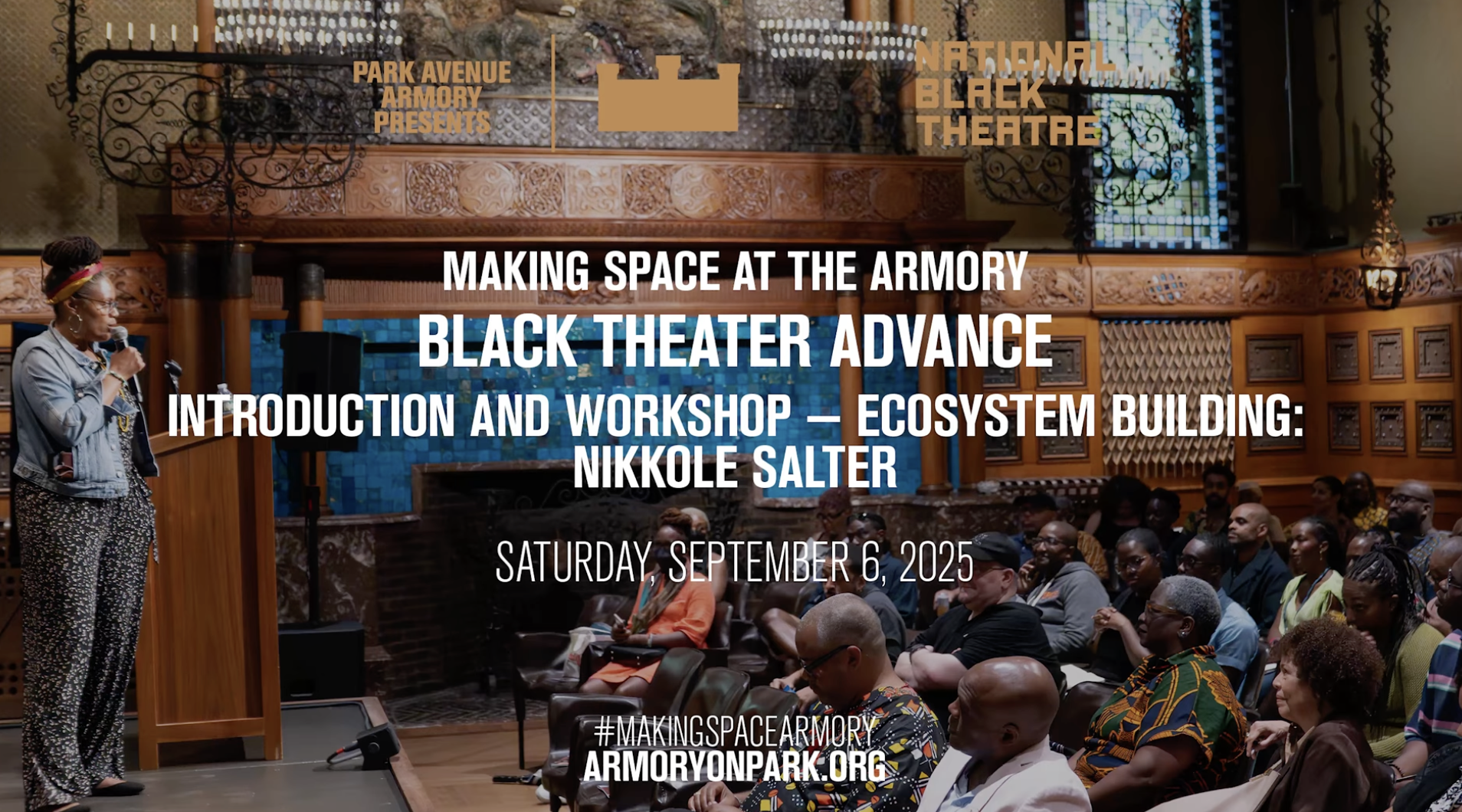 The one-day salon event Black Theater Advance intends to advance the findings of NBT’s Catalyst program’s most recent iteration, Catalyst: Seeding Permanence for Black Theatre and the New Vanguard. These preliminary findings and critical frameworks provide a jumping-off point for artists, scholars, directors, cultural strategists, and audience members in attendance to imagine what the future of Black performance could be. Anchored by keynote speeches and intimate fireside chats with Dr. Mary Schmidt Campbell, Ain’t No Mo’ creator Jordan E. Cooper, and former Vice President and Artistic Director of Social Impact at The Kennedy Center Marc Bamuthi Joseph, the day also includes active working sessions led by award-winning actor and dramatist Nikkole Salter and theatrical ceremonialist, culture worker, public scholar, and entrepreneur Ebony Noelle Golden as well as creative offerings from vocalist and composer Imani Uzuri and multidisciplinary musician Samora Pinderhughes, among others. Salon topics include: how artistic leaders are navigating and reshaping institutions; strategies for sustaining Black theater’s radical potential; building out a Bill of Rights for Black Theater; intergenerational dialogue across artistic and institutional divides; and bold visions for transformation in the field.